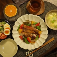 おはようございます!先日の晩ごはんはこちら。ご飯ですよぉ♪毎日ウチゴハンおうちごはんを楽しむ暮らしメインは鶏もも肉とお野菜のオーブン焼きバルサミコ風味。 バルサミコ酢を効かせたマリネ液に鶏もも肉とカットしたお野菜を漬け込み、まとめてオーブンで焼いたお手軽