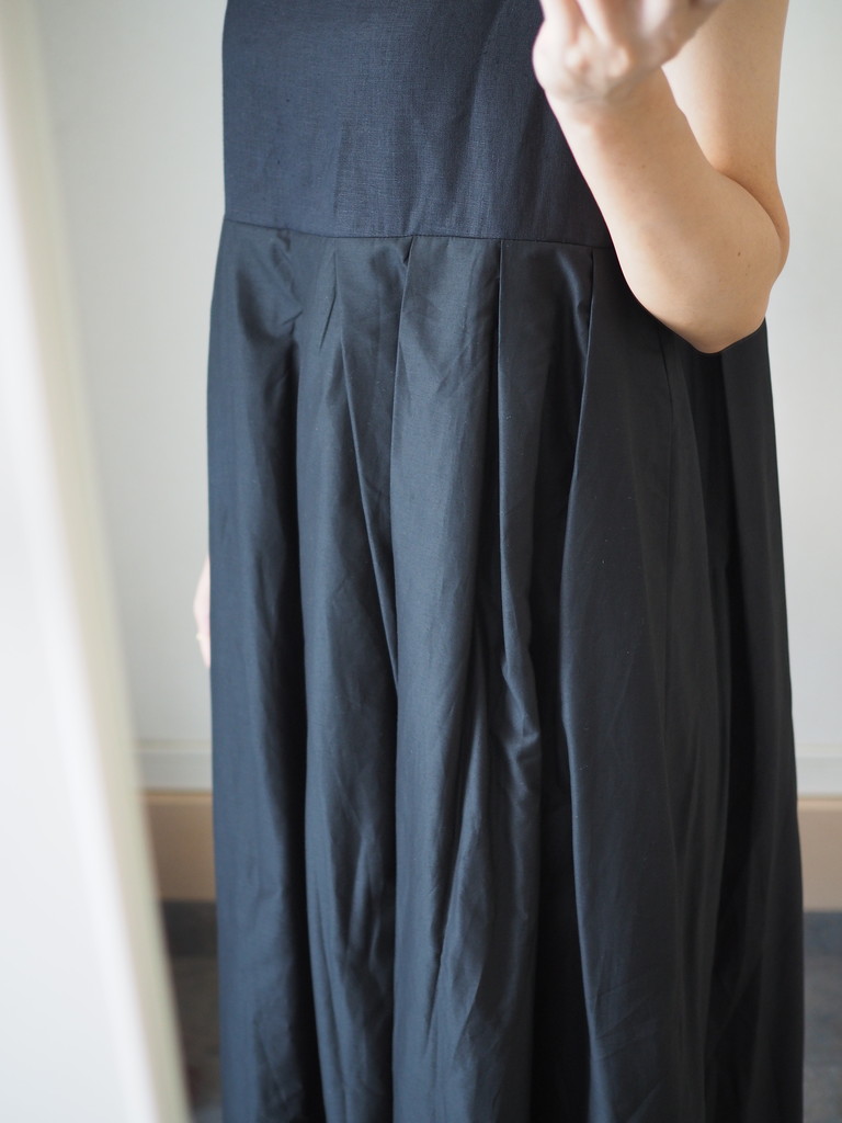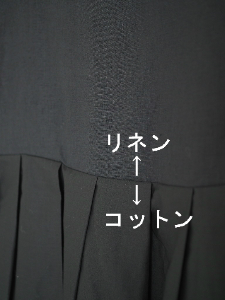 切り替えから上の身頃の部分には涼しげなリネン100%素材、