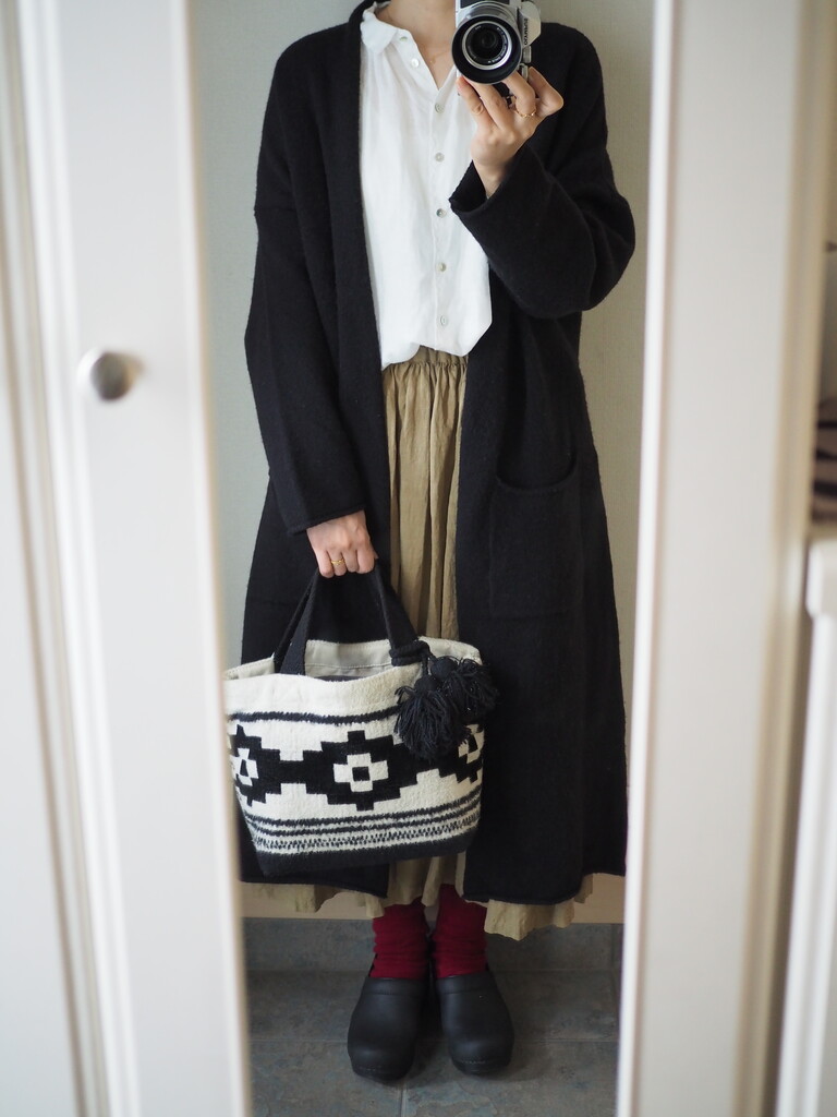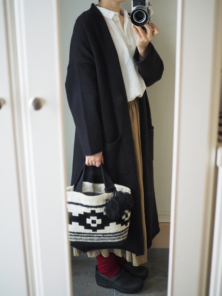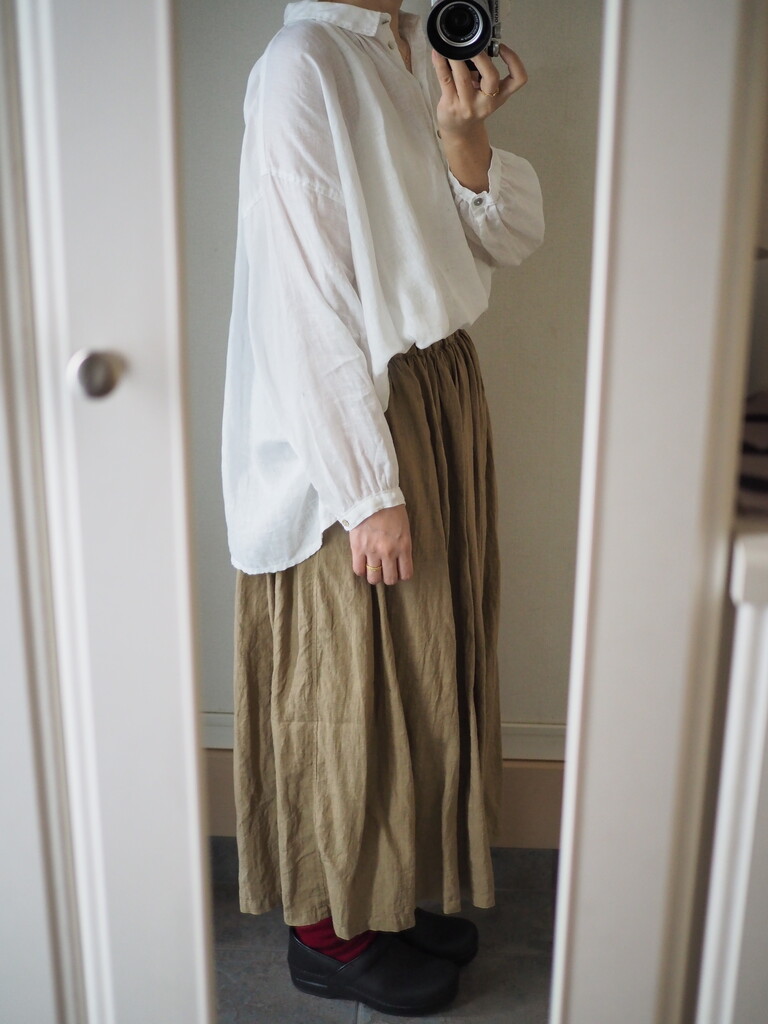 リネンのスカートはセールでお得に買ったイチアンティークスの物。