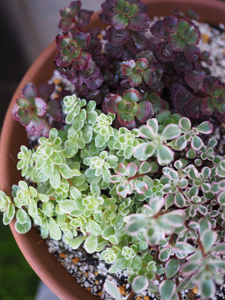 セダムの寄せ植えが元気。