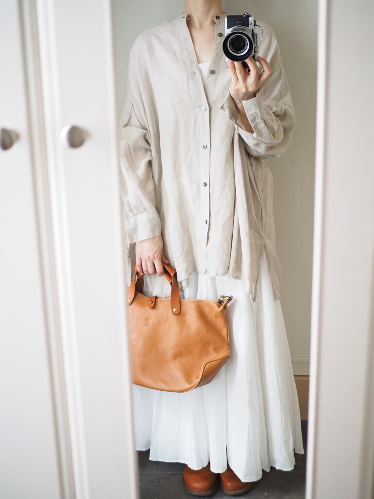 アイボリーのリネンシャツと合わせると、
