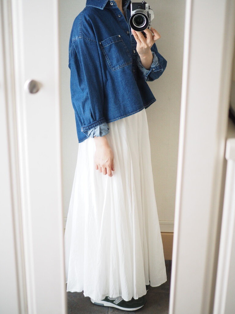 ショート丈のデニムシャツと