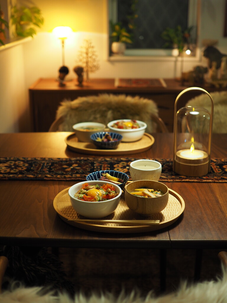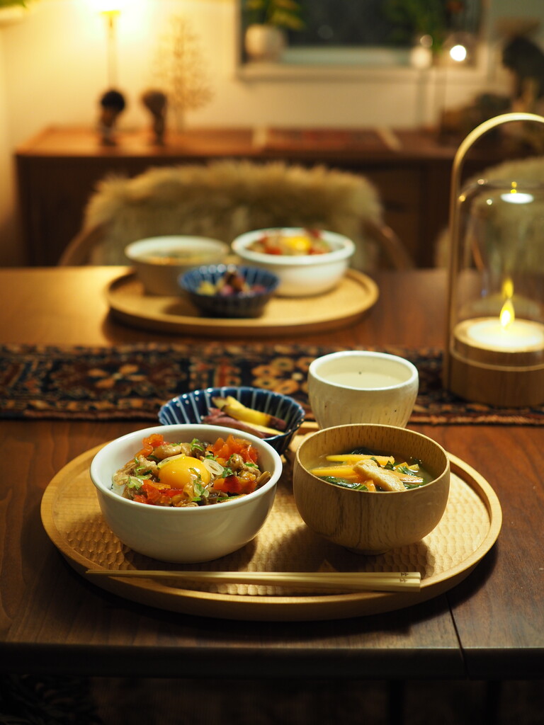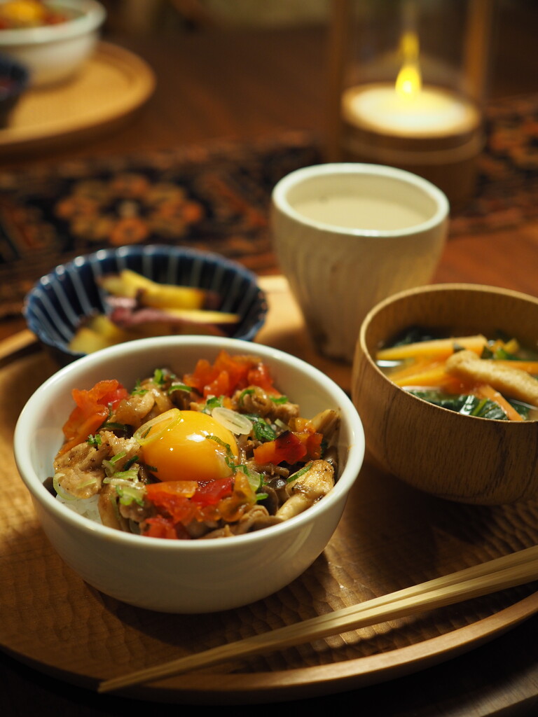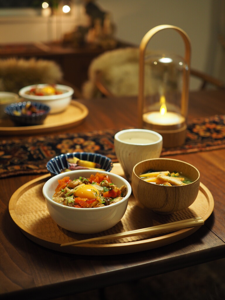 福神漬けを彩りで彩りでチョチョイとのせたら、