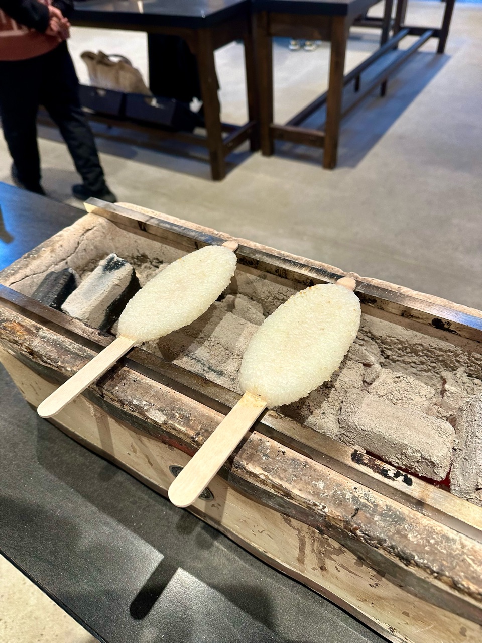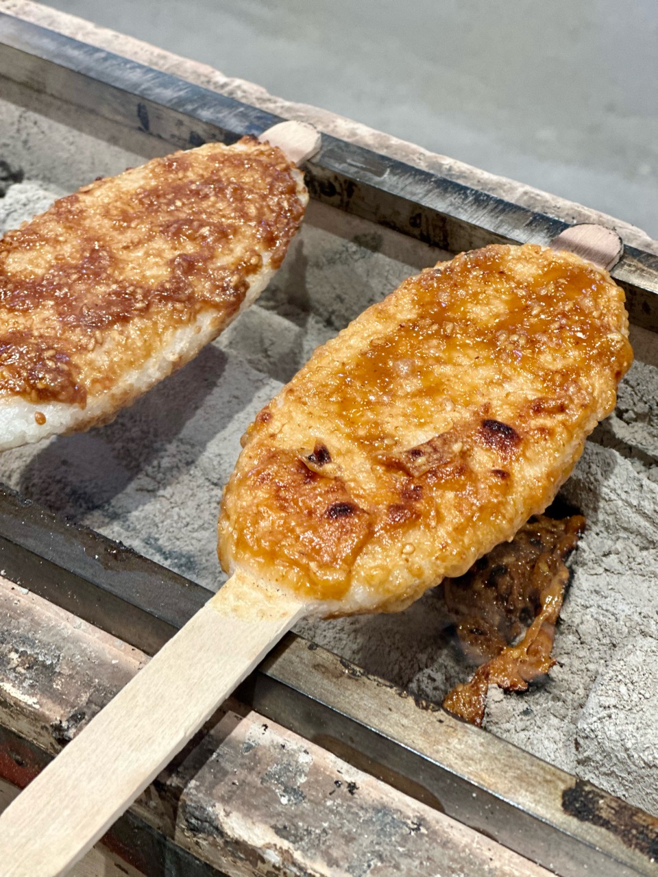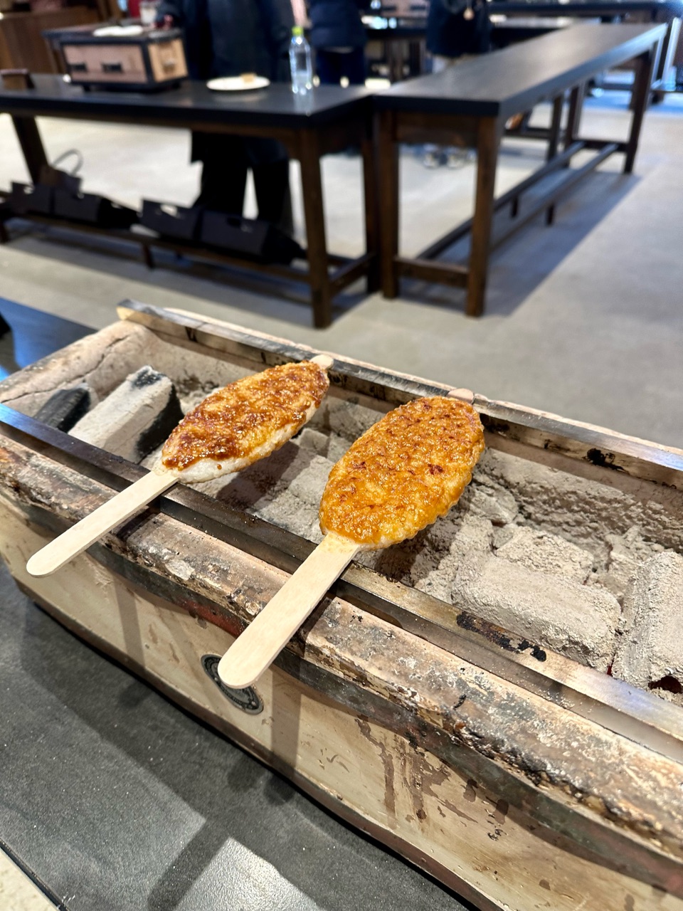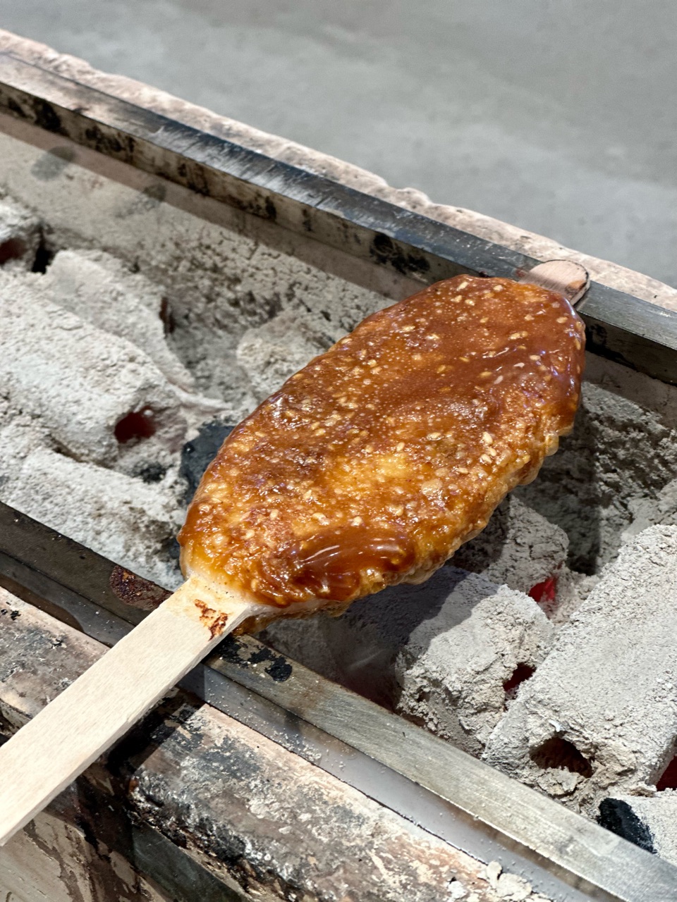 五平餅を炭火で焼いていくので、