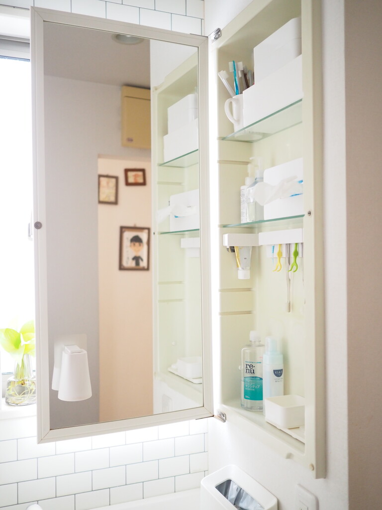 洗面所の壁付収納の中の