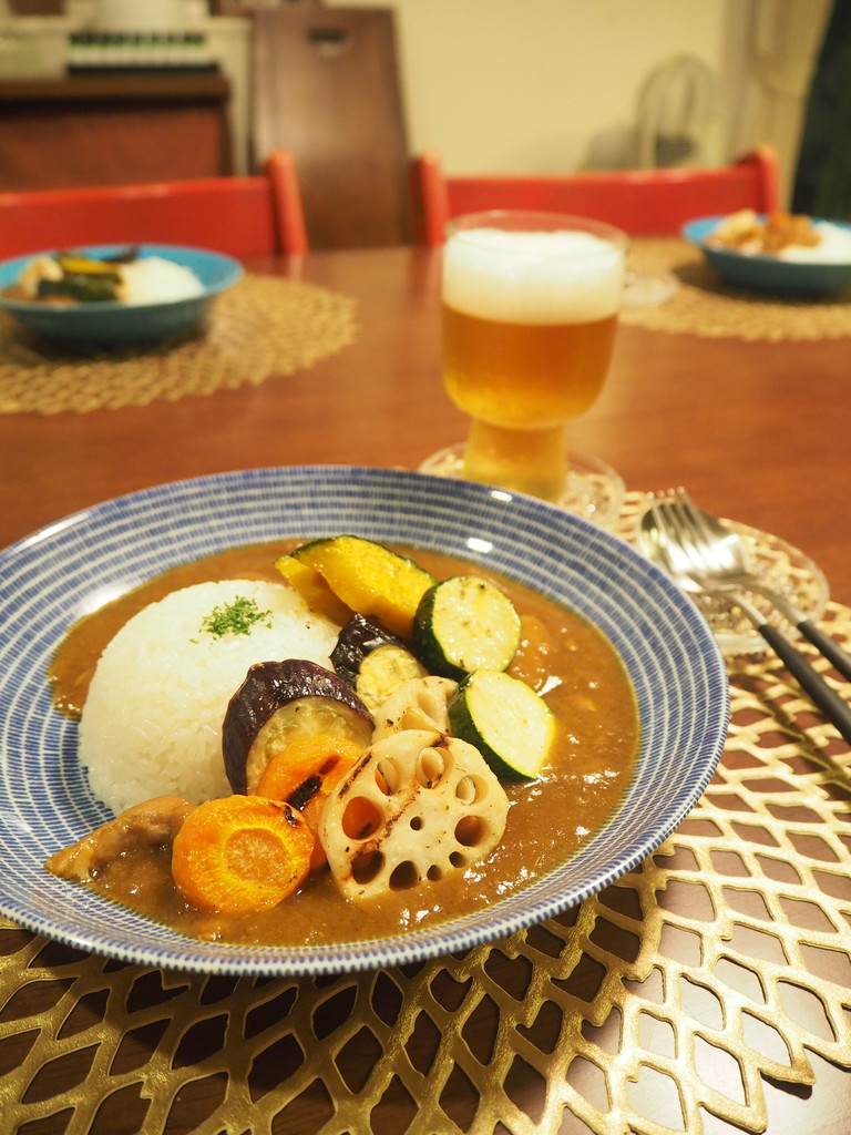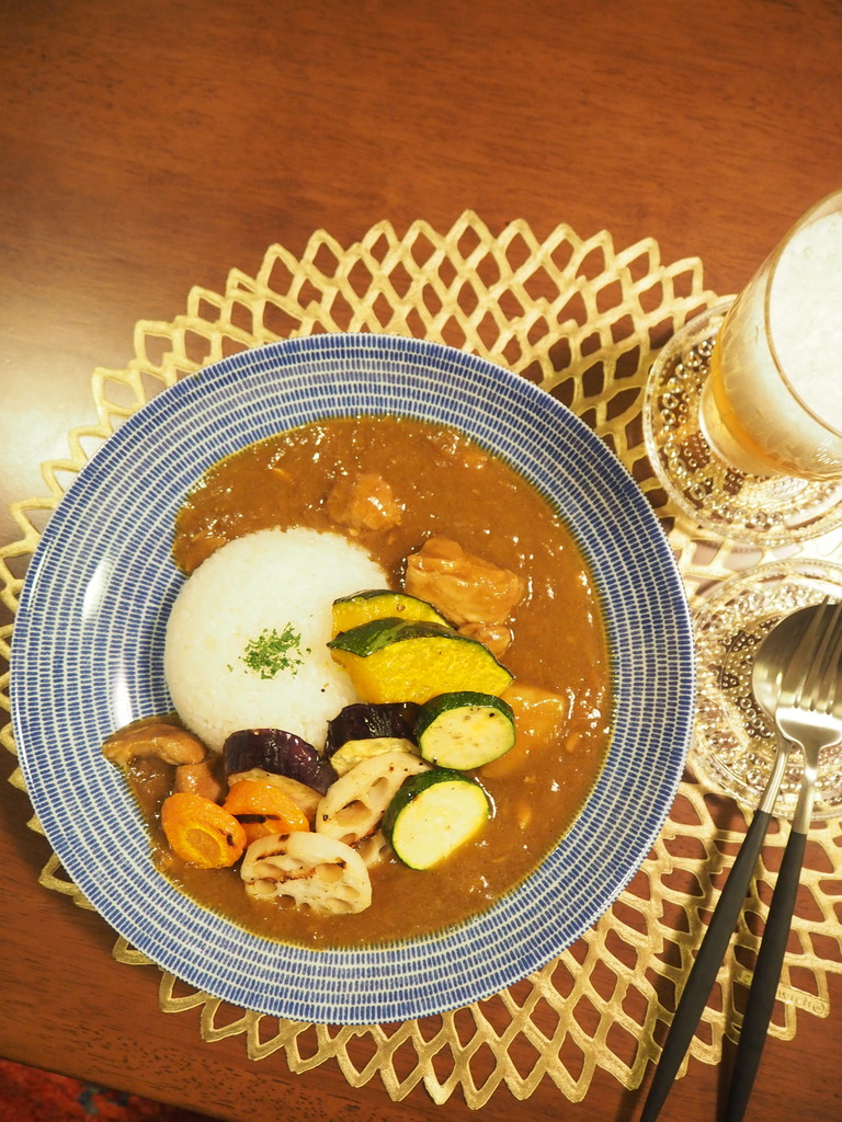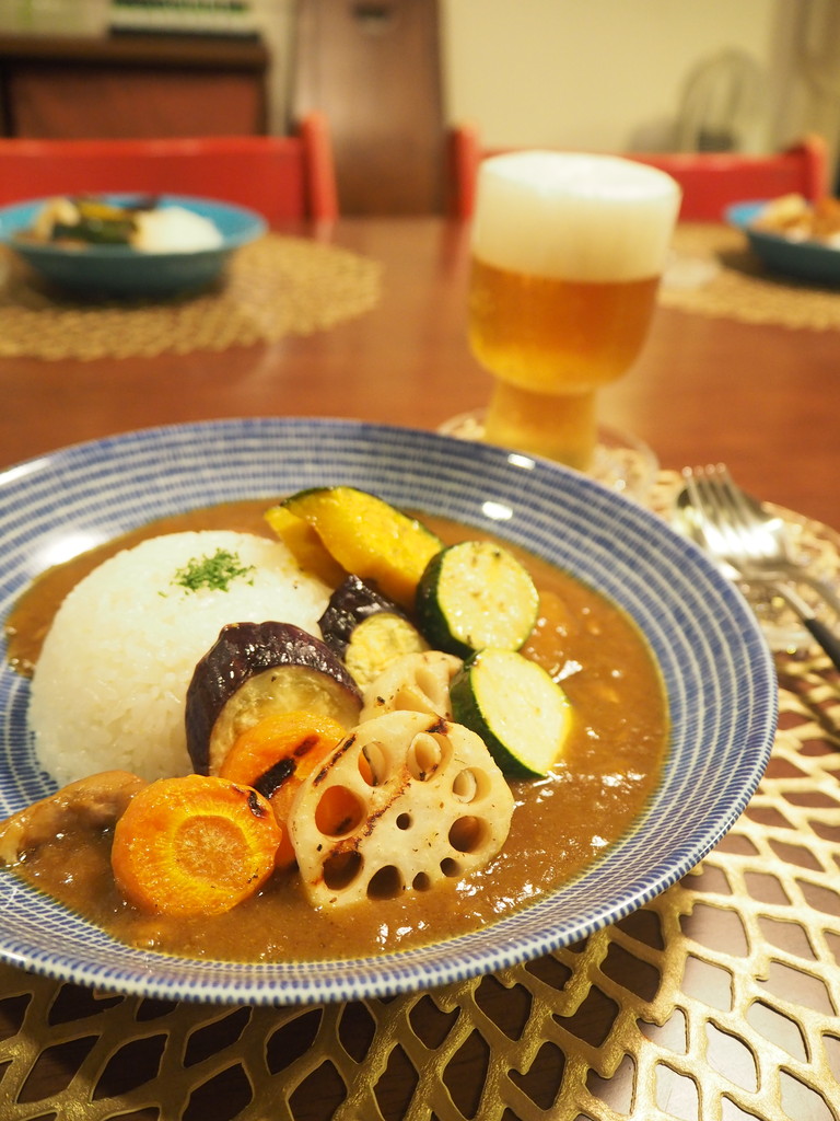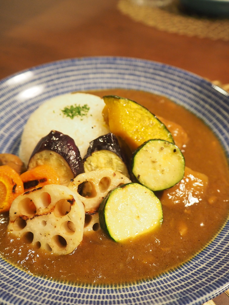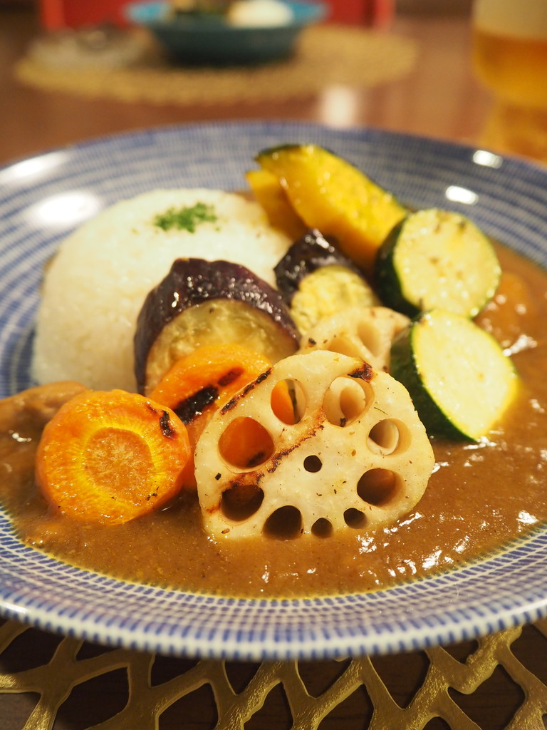 あまーい野菜のグリルに、しっかり辛めのカレー。