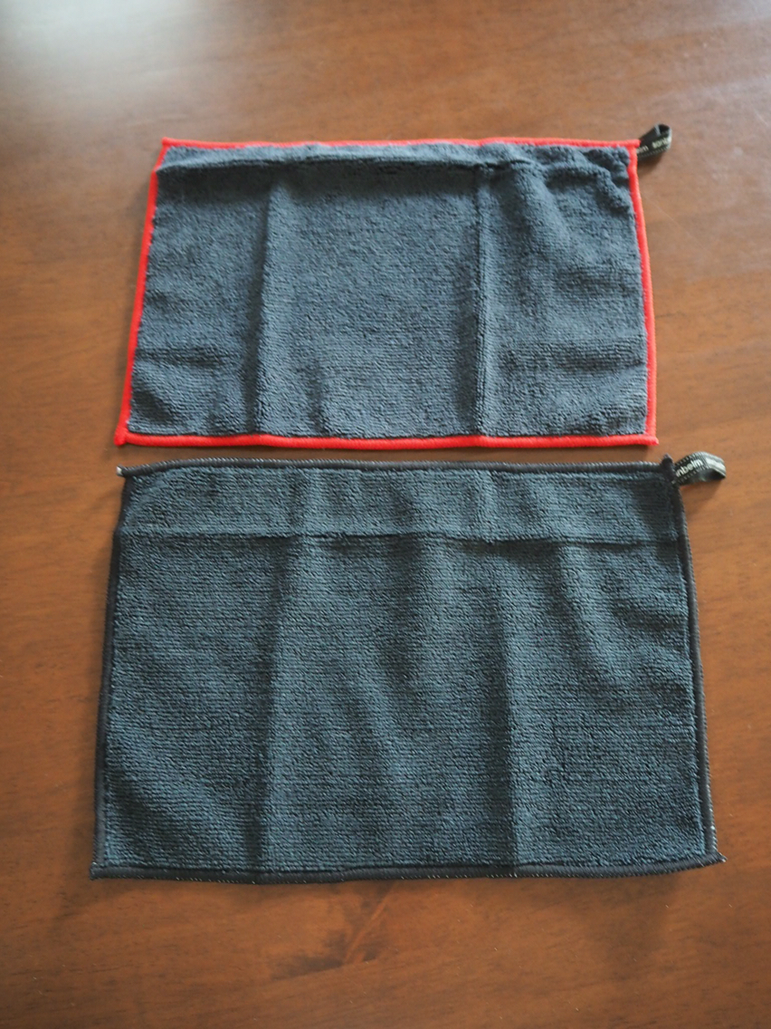 縁取りが赤い方を、お皿やお鍋を拭くのに使い、
